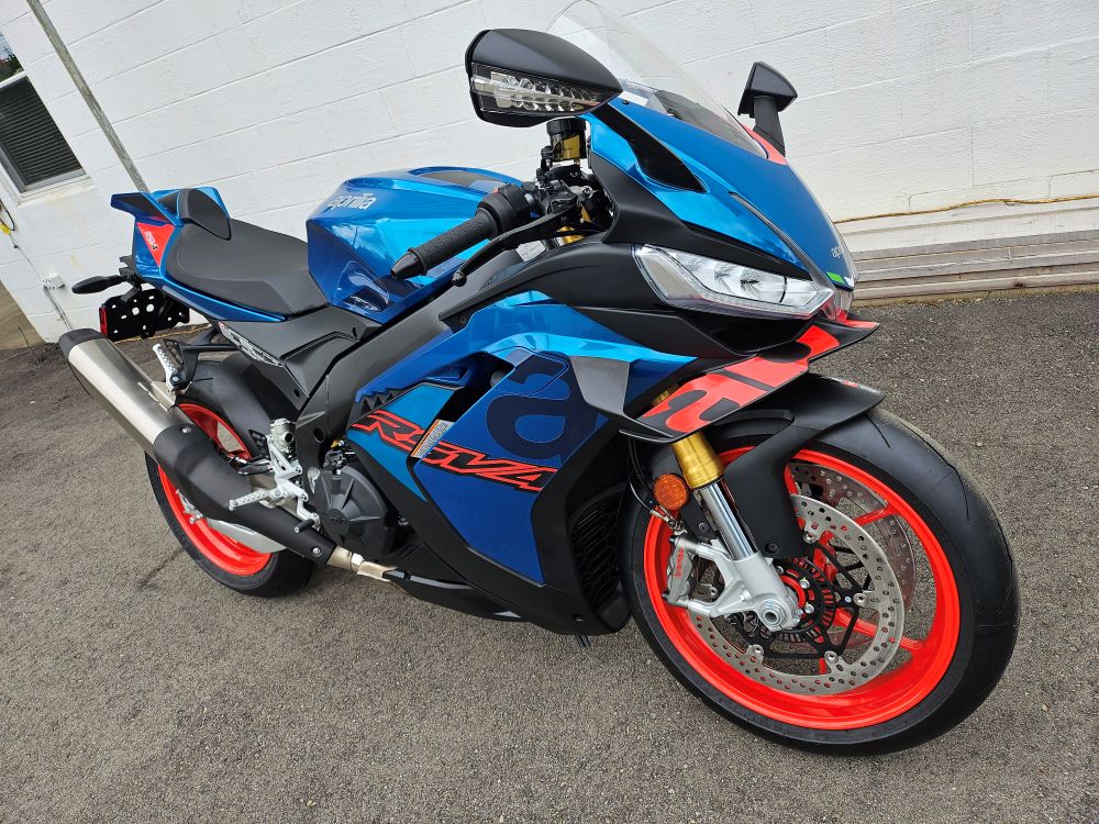The Aprilia RSV4 is powered by the unmistakable 1099-cc 65° V4 engine, delivering 220 hp at 13000 rpm and 127 Nm of torque at 10800 rpm—figures that establish it as the most powerful street-legal superbike on the market. Courtesy of the electronic Ride-by-Wire throttle and six-axis IMU, the engine works in perfect synergy with the advanced a-PRC (Aprilia Performance Ride Control) electronics package, also adapting its response to three exclusive Riding Modes (User, Street and Sport). The a-PRC electronics suite includes ATC (Aprilia Traction Control), AWC (Wheelie Control), AEB (Engine Brake), bidirectional AQS (Quick Shift), AEM (Engine Map) and Cornering ABS.